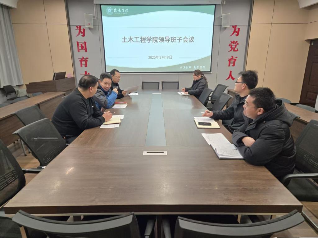 为研究部署推进学院2025年重点工作,3月19日上午,土木工程学院在理工楼112会议室召开领导班子会议。学院名誉院长鲍鹏、党总支书记徐远东、教学副院长杨子泉及班子成员参加了会议。