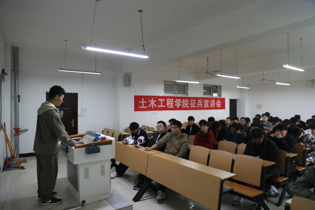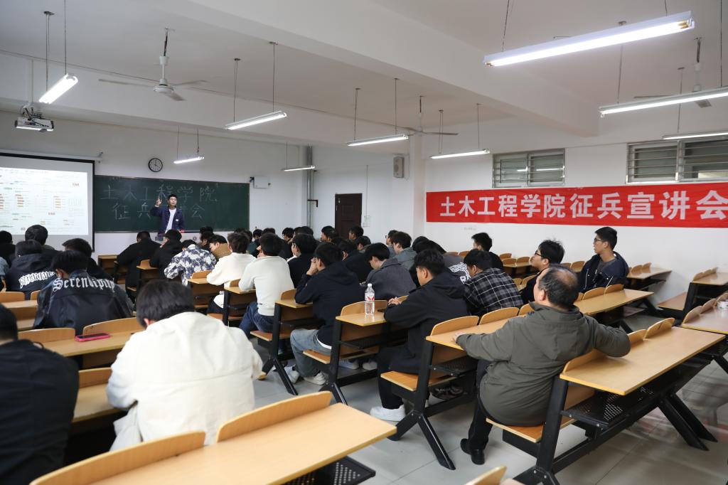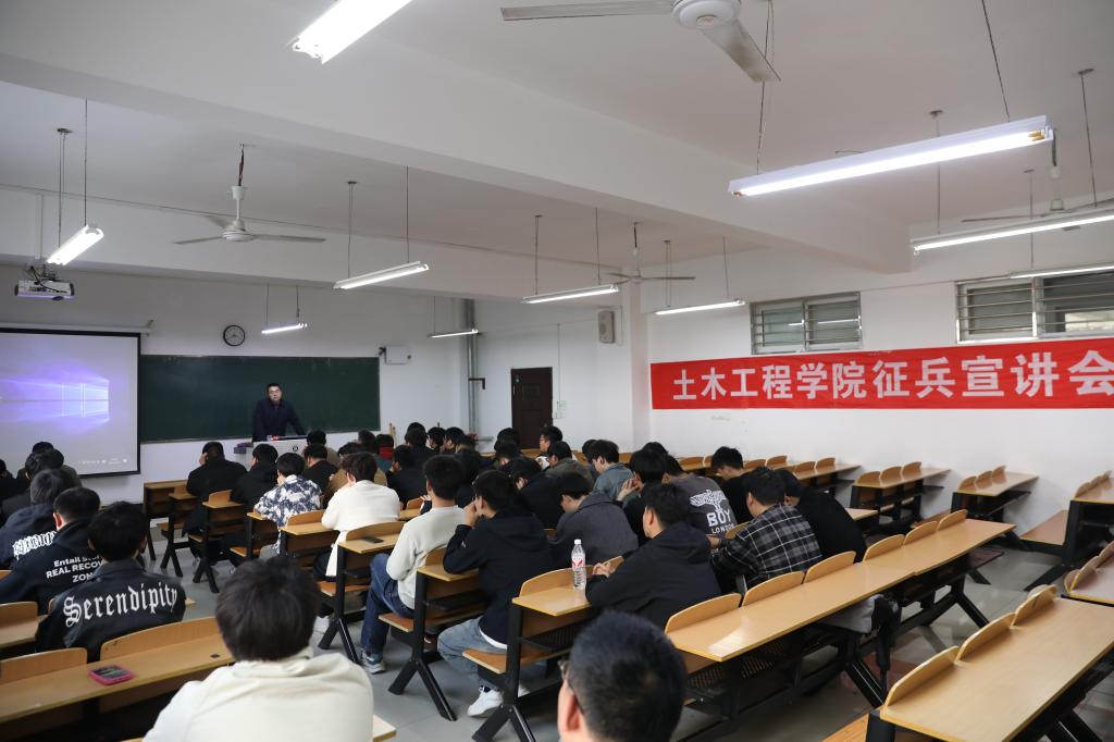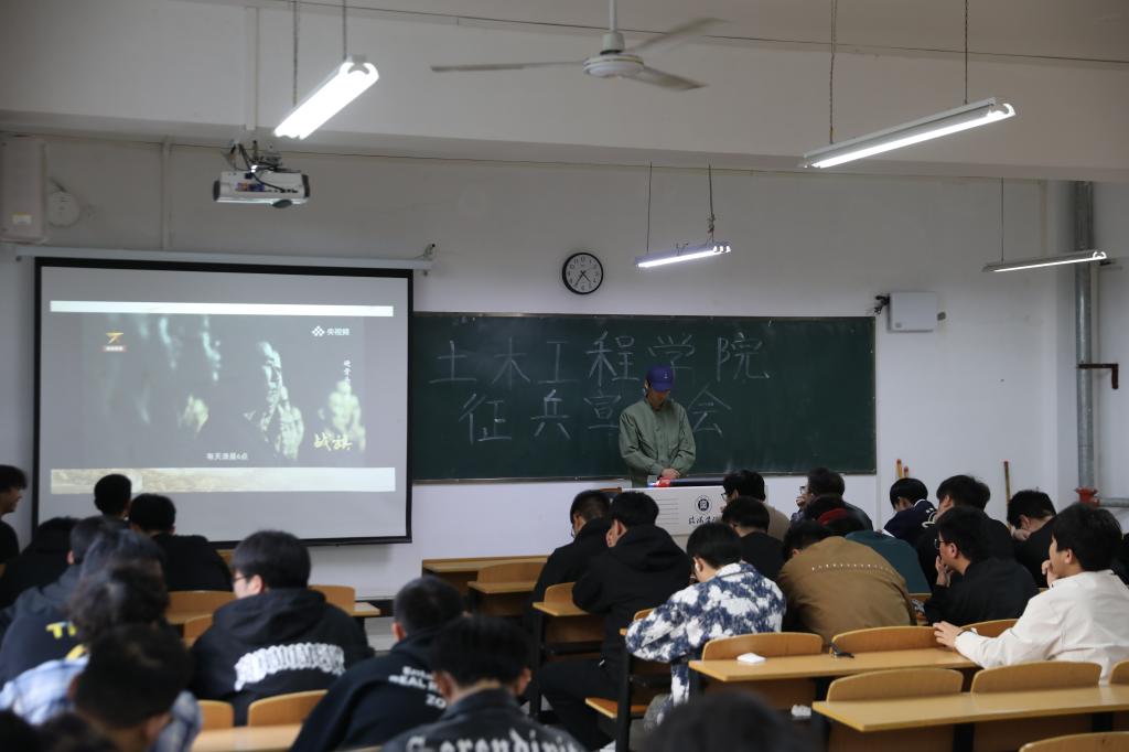 3月27日下午,土木工程学院在理工楼302教室举行了第一场征兵工作动员宣讲会。学院学工干事徐超、全体毕业班辅导员、部分2025年应届男性毕业生出席了本次宣讲会。