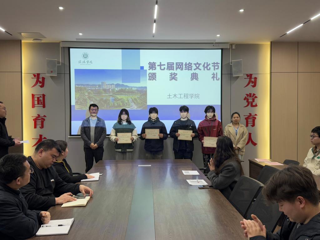 3月28日,土木工程学院第七届网络文化节颁奖典礼在理工楼112会议室举行。学院党总支书记徐远东、行政秘书郗利选、学工干事徐超、团总支书记徐飞、指导老师曹贞贞、陈子昌、刘泰虎出席活动。此次典礼由刘泰虎主持。