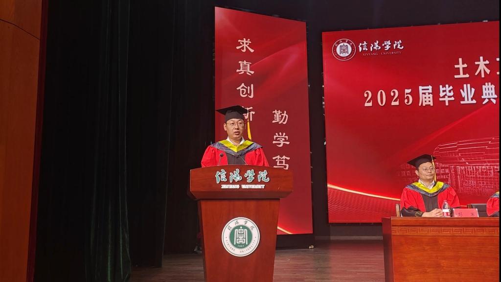 名誉院长鲍鹏发表了毕业致辞。他向圆满完成学业的2025届全体毕业生表达了热烈的祝贺,回顾了学校及学院发展取得的成绩,并对即将踏上新征程的毕业生提出了三点希望:一要终身学习,追求真理。鼓励同学们要鼓足勇气,直面社会,勤于思考,不断掌握新技能,养成终身学习、探求真理的良好习惯;二要艰苦创业,自强不息。希望同学们以知识、能力、毅力和情操,塑造自己、完善自己,成就自己、超越自己;三要报效祖国,热爱母校。希望同学们记住母校,关注和支持母校的建设和发展,用自己的思想和行动服务社会、报效祖国。并且希望他们在未来的职业生涯中,既要以毫米级的严谨对待每一项工程,更要以家国情怀扛起建设重任。愿他们用专业与担当筑牢民生基石,用创新与坚守攀登行业高峰。