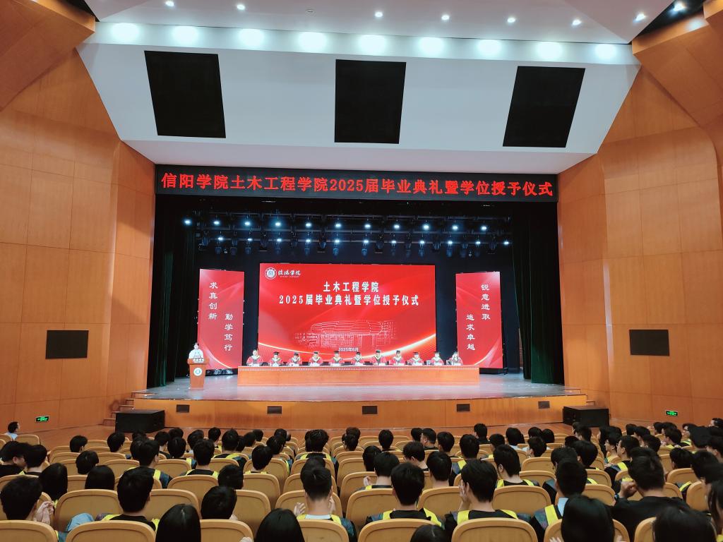 6月4日上午,土木工程学院在校音乐厅隆重举行2025届毕业典礼暨学位授予仪式。土木工程学院名誉院长鲍鹏、党总支书记徐远东、教学副院长杨子泉、行政秘书郗利选、教学干事王亮、学工干事徐超、学院学位评定分委员会委员、教师代表、全体辅导员、在校生代表和2025届毕业生齐聚一堂,共同见证这一重要时刻。本次典礼由徐远东主持。