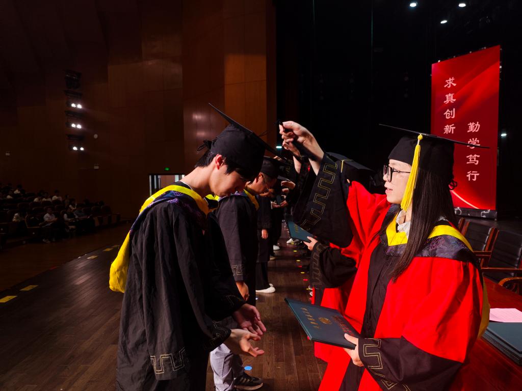 颁奖典礼结束后,杨子泉宣读了《太阳集团关于授予2025届本科毕业生学士学位的决定》。学院领导及学位评定分委员分别为各专业毕业生授予学位,正冠拨苏。