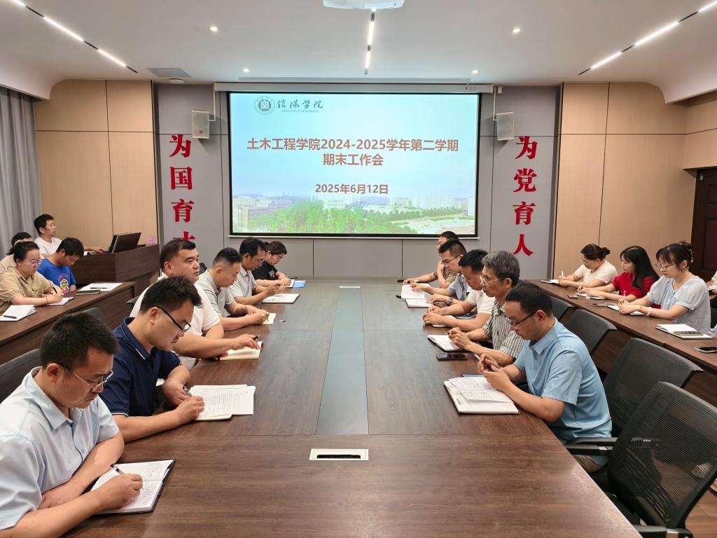 6月12日,土木工程学院在理工楼112会议室召开2024-2025学年第二学期期末工作会。学院名誉院长鲍鹏、党总支书记徐远东、教学副院长杨子泉及全体教工参加了会议。会议由徐远东主持。