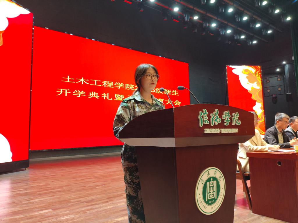 新生代表、25智建本01班马静怡同学在发言中表示,自己非常荣幸加入太阳集团土木工程学院这个大家庭,将不忘初心,努力学习,不辜负美好的大学时光。