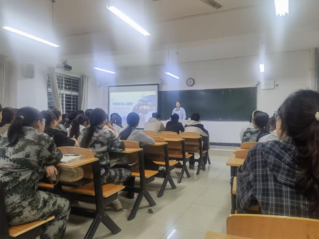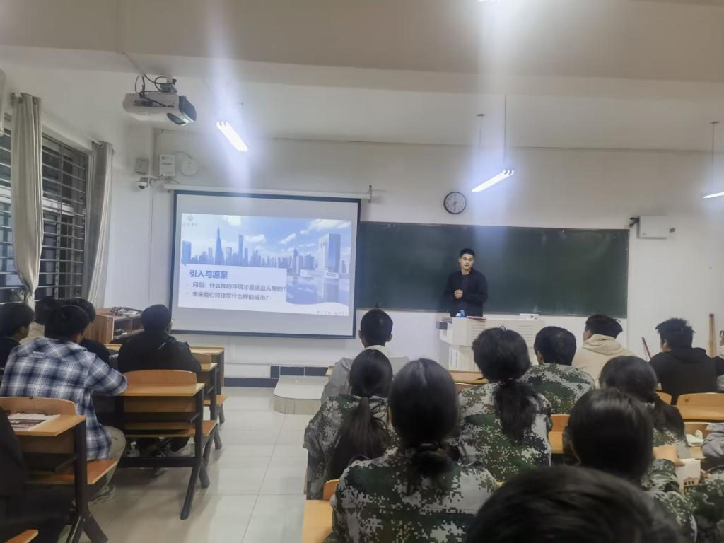 随后,李士瑞老师以“构筑未来人居梦”为主题,从专业内涵出发,通过一系列工程案例,生动形象地阐释了专业在绿色生态城市、健康智慧人居、生态环境治理和城乡可持续发展等核心领域的研究方向与应用价值。系统介绍了本专业的师资队伍、课程体系、实践教学环节和实验实训条件,重点展示了人居环境科学与技术专业在产教融合方面的特色与成果,让新生们对未来的学习路径和职业发展有了清晰、直观的认识。王冬冬老师分析了目前行业发展新方向,鼓励大家认真学习专业知识,考取各类行业执业资格证书。