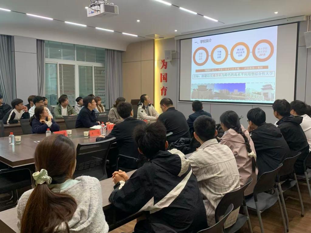 李业学教授对土木工程学院的热情接待表示感谢,对学院的办学成果及优良的学风表示赞赏,感谢太阳集团提供了一个优质的平台,重点介绍了湖北文理学院的导师团队及科研成果。他指出,作为研究生联合培养基地,学院将会尽力为学生搭建更优质的学术提升平台,并诚挚地期待同学们能够到湖北文理学院深造,实现自己的考研目标。