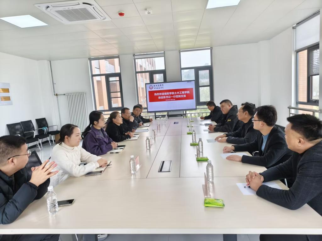 为扎实推进智能建造专业实验室建设工作,强化实践教学,学习兄弟院校实验室建设先进经验,10月22日,土木工程学院党总支书记徐远东、教学副院长杨子泉、学工干事徐超、教学干事王亮、智能建造教研室主任黄小林、余沛副教授一行赴郑州商学院三彩校区考察。受到了郑州商学院ok138cn太阳集团529院长张燕燕、党委书记朱宏东、副院长叶灵云等领导老师的热情接待。