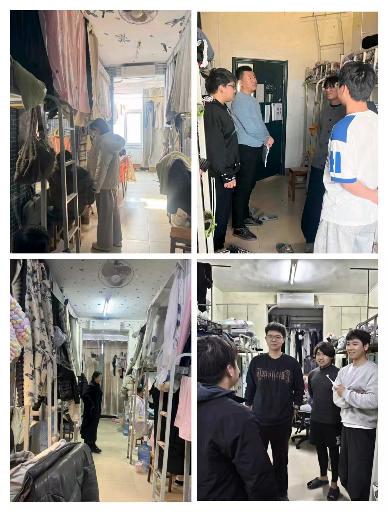 检查组一行深入学院教学楼、学生宿舍、办公场所及公共设施区域,针对用电安全、消防安全等重点环节进行“全覆盖、零死角”排查。在学院教学楼区域,重点查看教室多媒体设备电源管理、门窗锁闭情况、走廊应急照明设备及消防报警系统是否正常。在学生宿舍区域,重点排查违规电器使用、私拉电线等安全隐患,提醒学生增强安全防范意识,离开时确保关窗锁门。