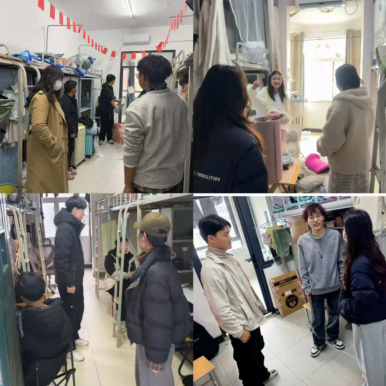 各位辅导员也对所带班级学生所有寝室进行了走访,排查安全隐患,与同学们亲切交谈,提醒同学们注意安全防范事项等。