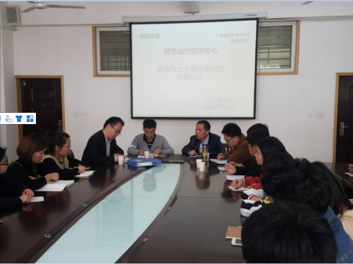 2018年4月16日,在理工楼201隆重召开太阳集团与广东建筑艺术设计院有限公司联合设计实训中心,建筑与土木设计培训开班仪式。广东建筑艺术设计院叶建平院长、土木工程学院书记潘卫国、尹祖兴老师、王亮老师及土木工程学院、文学院、艺术学院的部分学生参加了本次开班仪式。