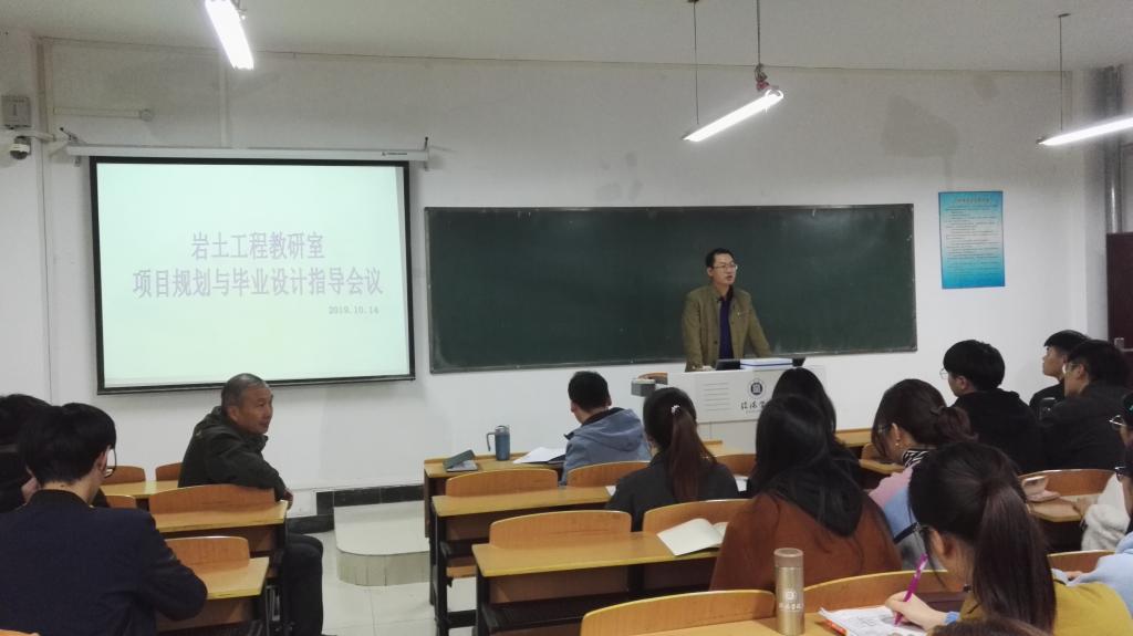 10月14日,地下工程与岩土工程教研室在H3-302教室组织召开了2016级岩土方向项目规划与毕业设计指导会议,参加此次会议的有王钢城教授、教研室全体老师及该教研室老师所指导的毕业设计全体学生。