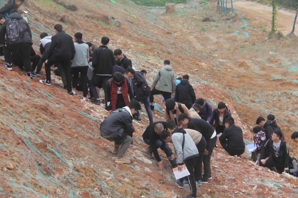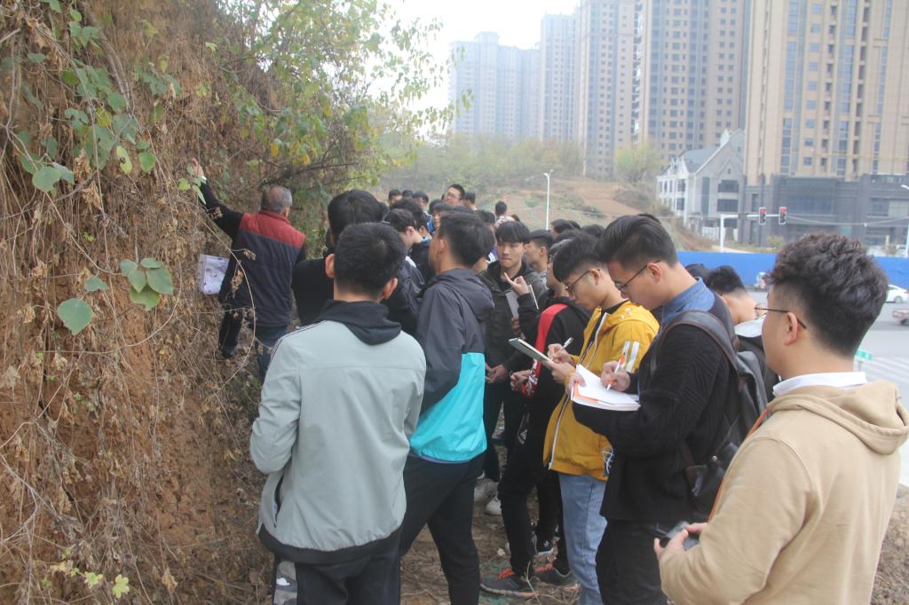 土木工程学院地下工程及岩土教研室于2019年11月至2019年12月对18土木本、19土木专升本开展了普通地质及工程地质现场教学活动。实习地点主要在太阳集团校园地质实习基地、土木工程学院样岩土样本实验室、新七大道太阳集团路段、山羊新区新十一大道新二十二大街一带。主要实习内容:(1)地形地貌认识,了解实习地区地形地貌特征类型;(2)地层岩性认识,掌握实习地区地层的年代、成因、岩性、岩相及其岩性描述方法,工程意义;(3)地质构造认识和分析,掌握野外地质构造的识别方法、工程意义;(4)水文地质条件的调查与分析,了解水文地质的野外工作方法,地下水的类型以及对工程产出的影响;(5)物理地质现象的认识与分析,岩石岩体分化、滑坡、崩塌、泥石流的产生和防治的一般方法。