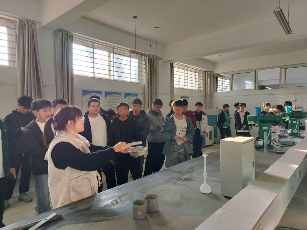 在土木工程材料实验室,许聪老师重点介绍了水泥强度检测仪、混凝土抗渗仪等设备。“从建筑用砂的级配分析,到混凝土的耐久性测试,我们实验室承担着土木工程材料课程的核心实验任务,同时也为‘绿色建筑材料研发’等科研项目提供支持。” 让新生感受到专业领域的创新活力。