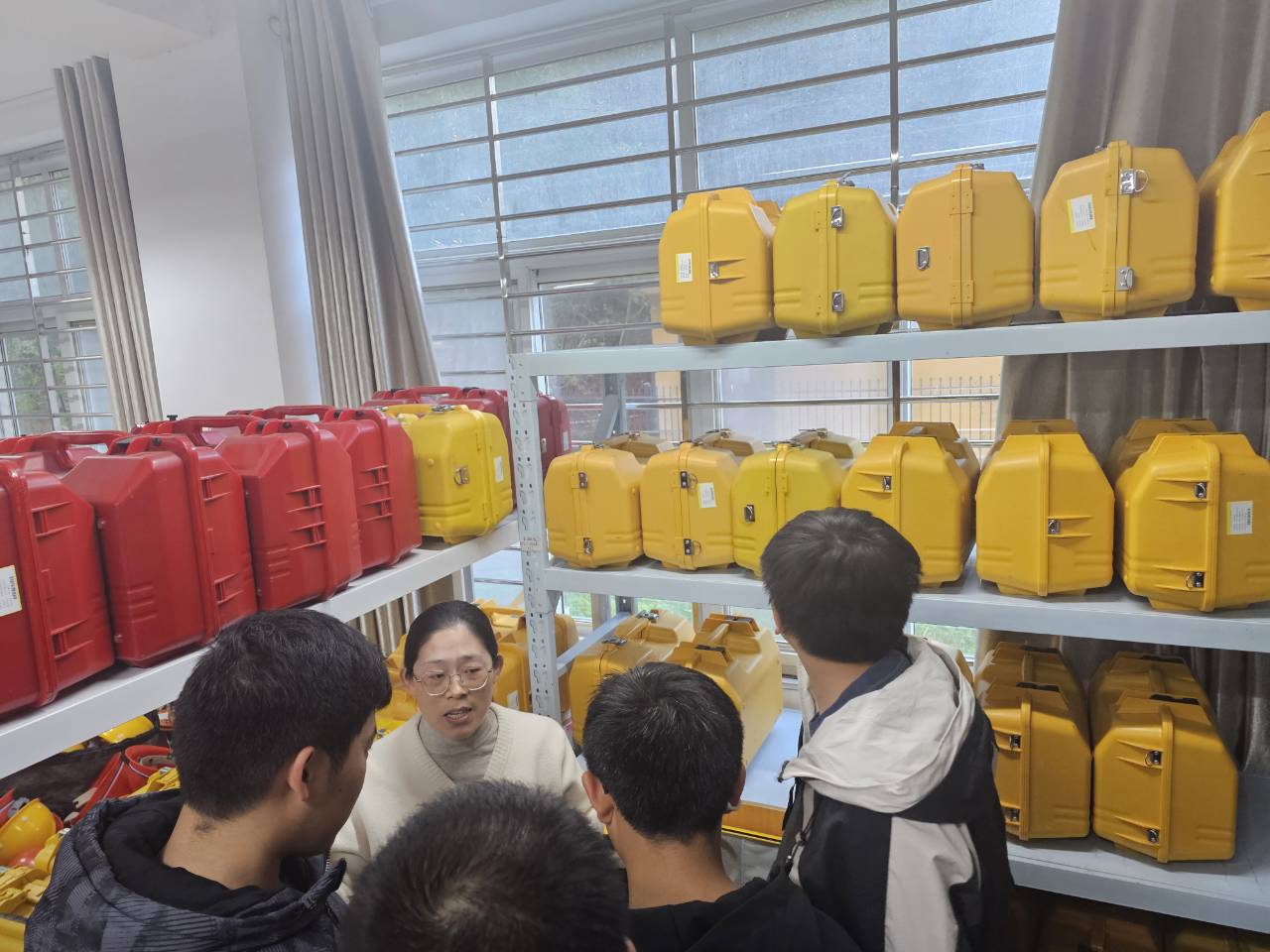 走进工程测量实验室,唐辉老师向新生们展示了全站仪、GNSS 接收机等先进设备。“工程测量是土木工程的‘眼睛’,无论是建筑选址、桥梁施工,还是后期维护,都离不开精准的测量数据。” 她现场演示了全站仪的操作流程,让新生切实体会到专业知识的应用场景。