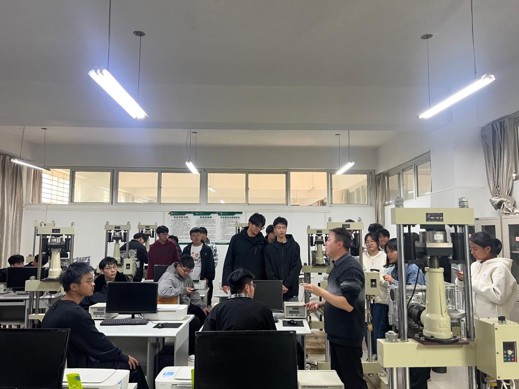 参观过程中,新生们认真聆听讲解,不时围绕设备功能、实验内容等问题与老师互动。此次参观活动是土木工程教研室 “新生专业教育” 的重要环节。通过沉浸式体验,新生们不仅熟悉了实验教学中心的资源配置,更对土木工程专业的实践属性、发展方向有了清晰认知,为后续专业课程学习与职业规划奠定了坚实基础。