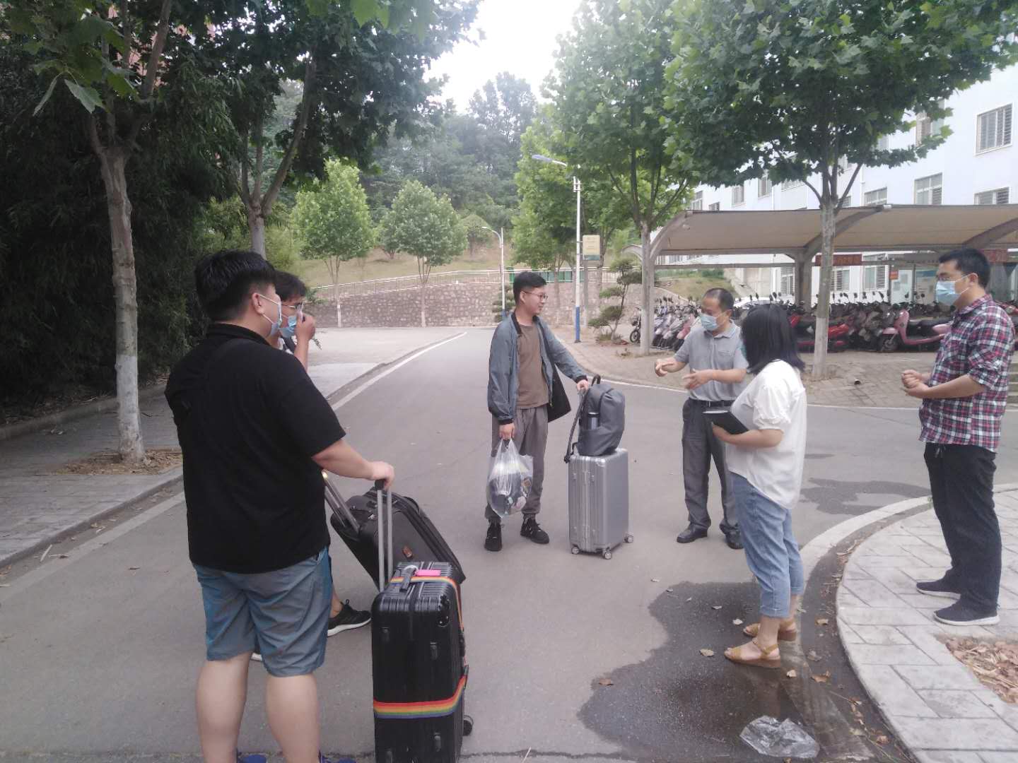 2020年5月29日,土木工程学院党总支书记潘卫国、学工干事徐超及毕业班辅导员一起走访慰问毕业生,查看学生离校情况。