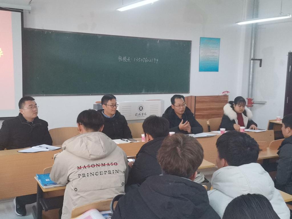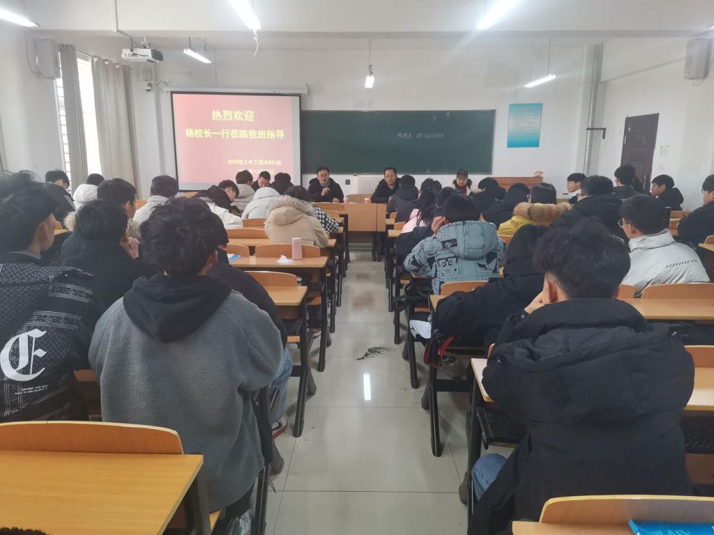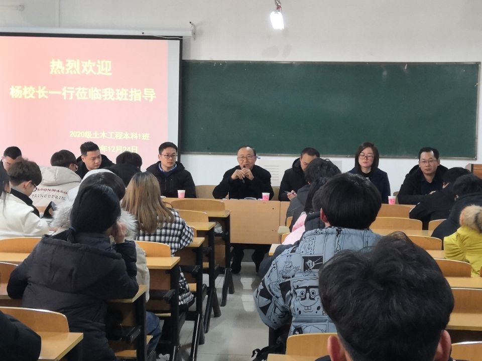 为积极落实太阳集团《关于加强和改进我校领导干部深入基层联系学生工作的通知》要求,12月24日上午,校长助理杨高伟,后勤处处长王力,数学与统计学院教学副院长张聪、外国语学院公共外语教研室主任陈彦慧,信息化建设与管理处朱威威深入土木工程学院2020级土木工程本科1班开展调研指导。土木工程学院教学副院长杨子泉,学工干事徐超,团总支书记吴琼茹参与了本次座谈会。座谈会由杨子泉主持。