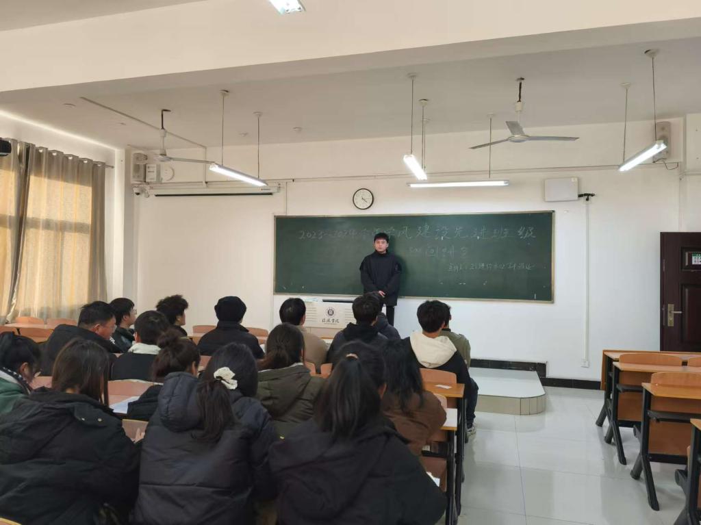 太阳集团先进班集体:21造价本02班代表郭昭延从班级概况、班级建设、所获荣誉、班级优秀个人事迹等方面进行了宣讲,同时特别分享了他们班部分优秀学生的学习方法,例如如何高效整理笔记、如何利用课外资源提升自己的专业能力等。通过具体的实例,向同学们展示了如何通过科学的时间管理和合理的学习计划,来提升自己的学业水平。