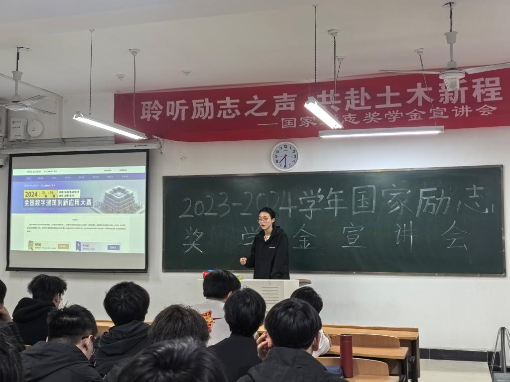 三月春深催奋进,榜样领航启新程。为充分发挥优秀学子的引领带头作用,树立榜样力量,3月24日至26日,土木工程学院在理工楼各班级开展了“聆听励志之声,共赴土木新程”国家励志奖学金宣讲会。国家励志奖学金获得者——22造价本01班封亚迪、23土木本04班马瑞、23智建本01班金然等面向同学们做了宣讲。