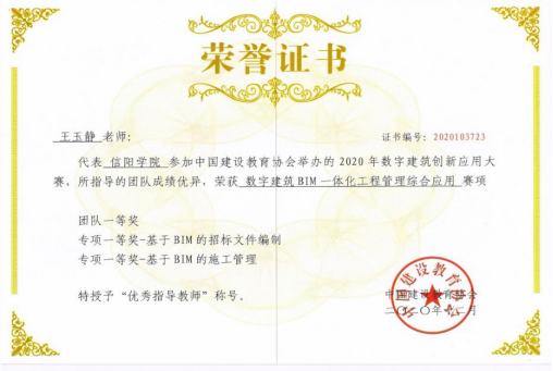 本实验教学团队指导工程造价专业学生在“全国数字建筑创新应用大赛”的比赛中获得国家级和省级奖项共14项,其中一等奖9项,二等奖2项,三等奖3项。